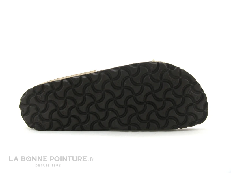 La doublure de la mule Femme Birkenstock Arizona taupe est en textile, et la semelle de propreté anatomique est en cuir velours.