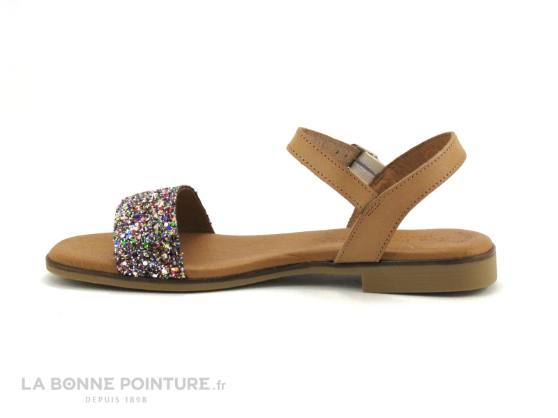 Pour briller cet été, voici de belles sandales en cuir marron avec paillettes multicolores Eva Frutos 3090 !