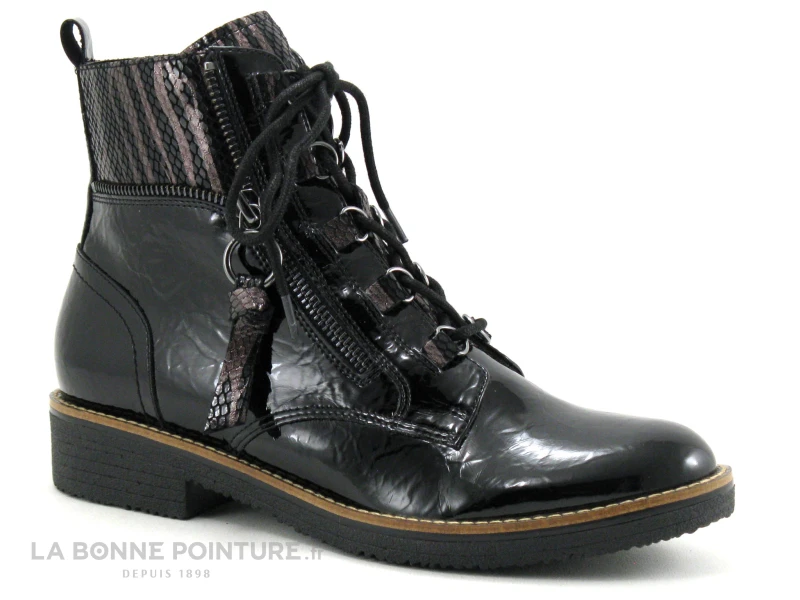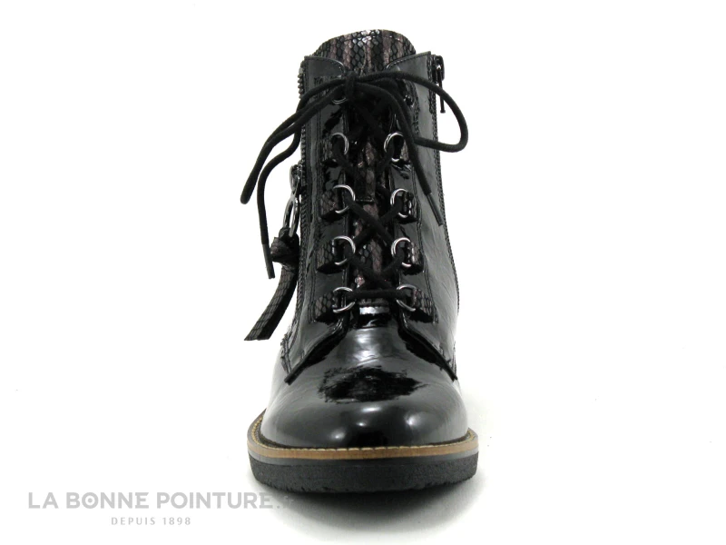 Les chaussures montantes noir verni Fugitive Genete, des bottines à lacet Femme mode, confortables et de grande qualité !