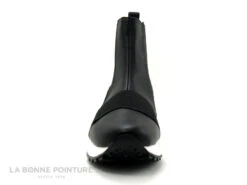 Cette bottine Femme Gioseppo est en cuir lisse noir, avec bout carré et couture apparente sur le dessus.