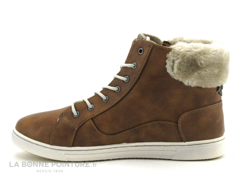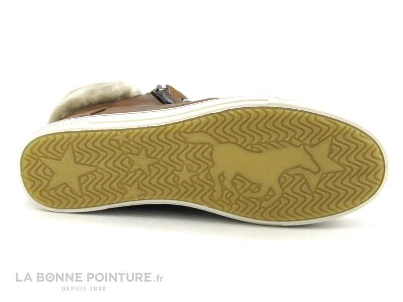 Les baskets montantes Femme marron avec fourrure Mustang 1349-504-301, des sneakers mode Femme pour l’hiver à réserver sans attendre !