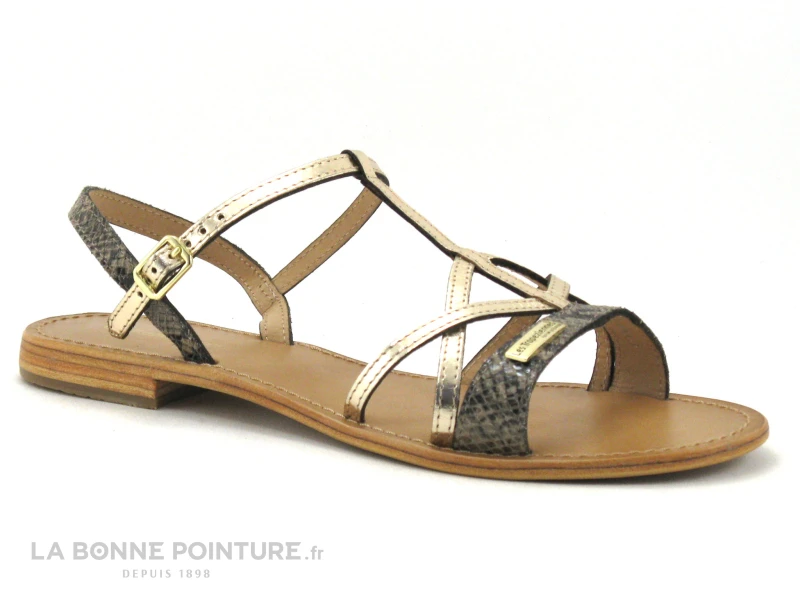 Sandales mode Femme tout en cuir, ces ravissantes plagettes Les Tropéziennes Hironela or et serpent !