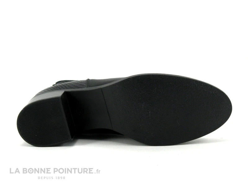 Cette séduisante bottine We Do mélange un cuir lisse noir et un cuir travaillé façon reptile sur la partie arrière de la chaussure.